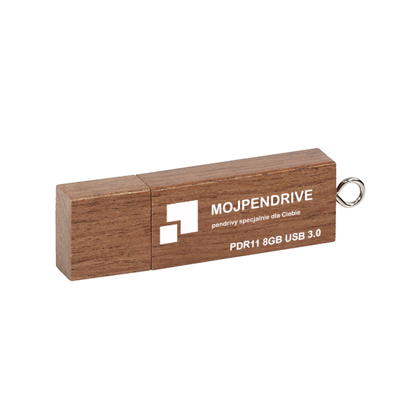 Klasyczny, sześcienny kształt, wysokiej jakości drewno wykorzystane do produkcji obudowy to najważniejsze cech modelu PDR11 Korpus pendrive zawierający chip pamięci oraz zamykana na magnes zatyczka tworzą spójną całość, charakteryzującą się zróżnicowaniem kolorystycznym właściwym dla prawdziwego drewna. Ciemnobrązowe drewno idealnie poddaje się grawerowaniu laserowemu, jednocześnie bardzo dobrze wygląda z kolorowym nadrukiem. Dzięki temu prezentowany model daje praktycznie nieograniczone możliwości wykonania znakowania reklamowego. Model oferowany jest z różnymi pojemnościami pamięci – zarówno z interfejsem USB 2.0 jak i USB 3.0.